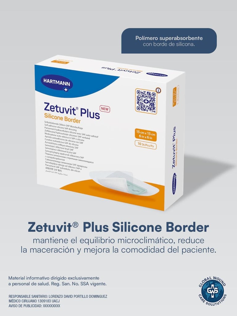 Descubre ZETUVIT, el apósito super absorbente de Hartmann, diseñado con tecnología innovadora que encapsula el líquido en gel, facilitando así una recuperación más rápida y efectiva de tus heridas. Con ZETUVIT, estarás eligiendo lo mejor para tu bienestar y salud.